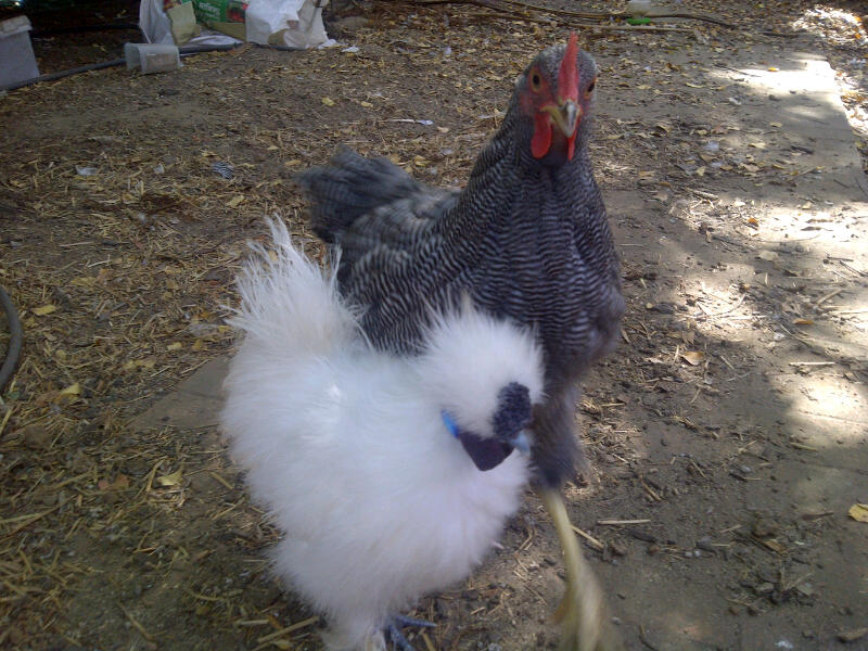 One morning I heard a terrifying noise. A sort of of strangled errrooo-errooo noise. I prayed it was a really sick possum. A few weeks later, Husband noted – as he was wrenched from his sleep – that he could hear two distinctly different terrifying noises. One gutteral errrooo-errrooo, one falsetto erroo-erroo-errroooooo. No, I thought, it can’t be, not both of them … Then they shut up for a few days and I vainly hoped we’d imagined it. We hadn’t. For the last fortnight,  Koroco and Fuzzy have been heralding their version of the dawn (sometimes as late as 6.45am, usually around 6.15am on weekends) with cock-a-doodle-doo practice. When I’m not off somewhere jogging and blissfully unaware, I dash outside hissing “shut-up, shut-up, shut-up!”. They ignore me. Well they did until Monday, when they started attacking me instead. I open their cage door and they charge me, beaks snapping at my legs, toes, knees, whatever they can grab. It doesn’t surprise me with Koroco, he’s a wild-eyed bruiser. But Fuzzy is the least macho rooster I’ve ever seen. He’s cute and fluffy – an angora rabbit with a beak. While Googling places to offload roosters, I discovered a description of Fuzzy’s breed – silkies – as the puppies of the chook world. Well Fuzzy’s turned rottweiler, which means it’s not just errrooo-errrooo and eroo-erroo-errrooooo noises keeping Husband awake, he also hears me squealing, “get away from me you feral birds, arrrghhhh, get away!” while dodging frantically around the chook pen.