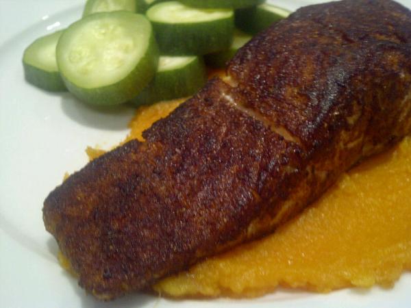 Spice-rubbed salmon with sweet potato mash
