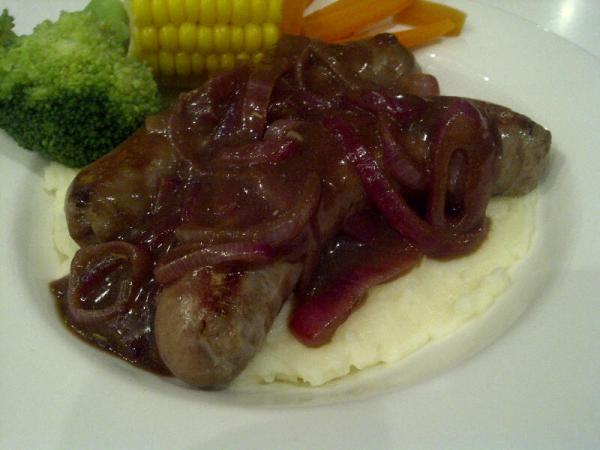 Sausages with cauliflower cheese mash