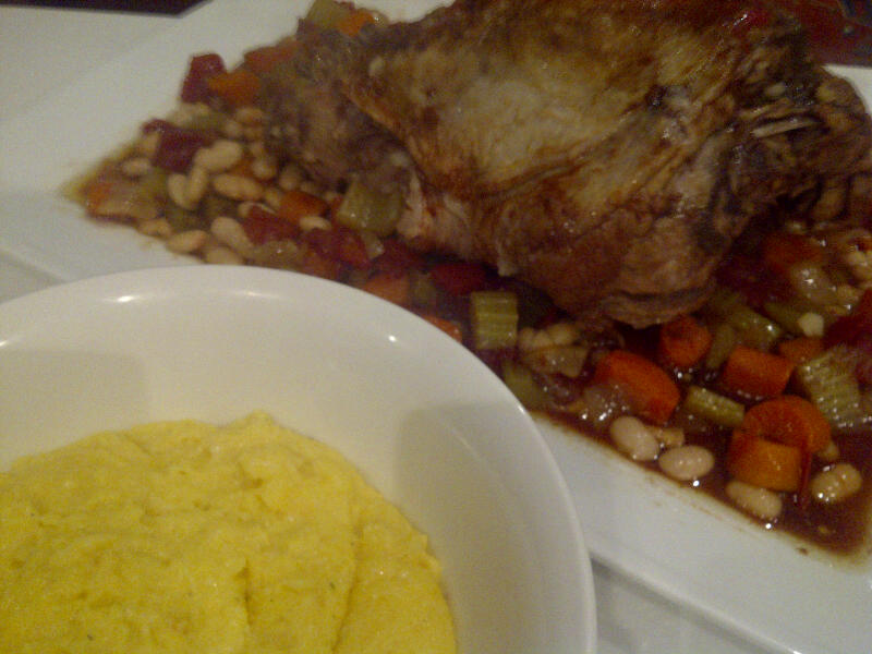 NOTE: I served the lamb with cheesy polenta. I brought 3 cups of water to the boil, slowly added 1 cup of polenta and stirred until the polenta was soft. I removed it from the heat and stirred in 1/2 a cup of cream and 1/2 cup of parmesan. Yum!