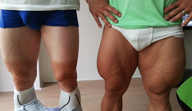- I know it’s not Hollywood, but I’m obsessed with this Twitter pic of picture of a “quad-off” between two German cyclists competing at the Olympics. Mountain biker Robert Forstemann owns the giant thighs on the right, while the less extreme legs on the left belong to Andre Greipel. Scary!