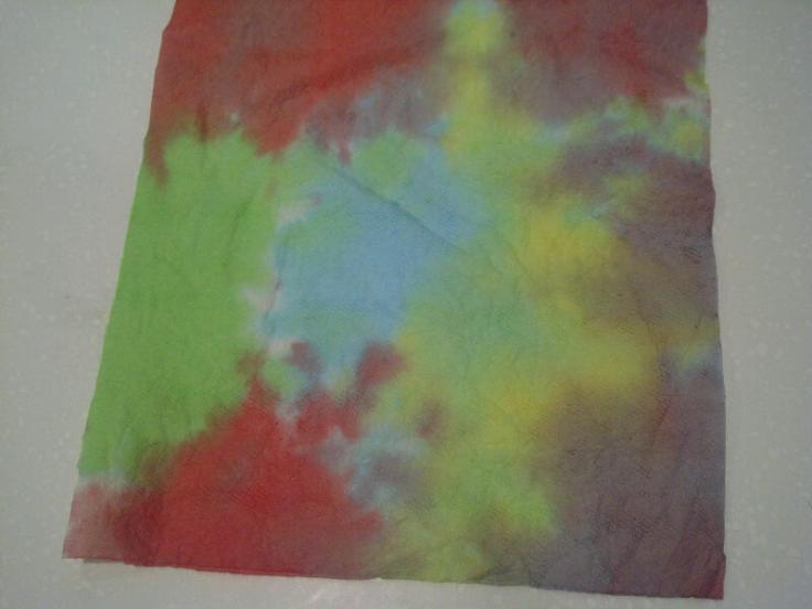 Instead, she tie-dyed 5o pieces of paper towel with a snotty-but-still-crafty Husband on Saturday morning (food colouring, squares of paper towel, folding … oddly effective …), then I took her and Sprog 1 to see Ice Age 4 on Saturday arvo to give the man-flu sufferer a break. The Sprogs enjoyed it. I thought it was pretty average. Especially since I couldn’t have a $5.40 (WTF?) choc-top because I’ve given up sugar.