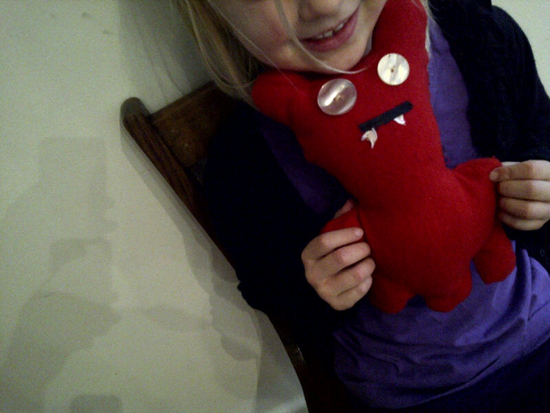It’s a miserable, blustery Saturday in Sydney, so Husband and the Sprogs curled up on the rug together and sewed their own Ugly Dolls. While they toiled (and bickered and stabbed themselves in the foot with their needle and cried a lot because their daddy had let them stay up late watching the Olympics), I made soup with some odds and ends in the fridge – carrots, sweet potato, red curry paste.