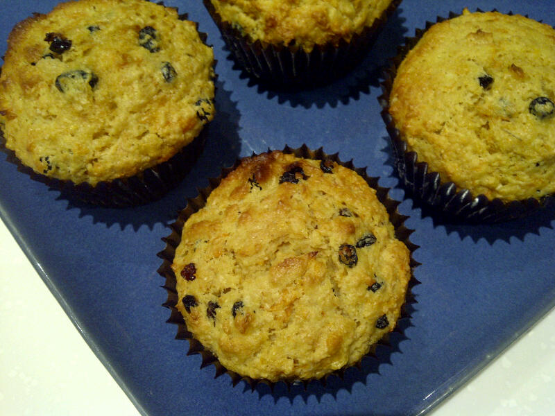METHOD: Preheat oven to 180C. Puree orange with brown sugar in a food processor. Mix egg, orange juice and butter in a bowl. Stir in pureed orange mixture. Gently fold in flour. Stir through currants. Pour mixture into a 12-cup muffin tray. Bake for 20 minutes or until golden.
