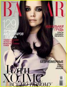 * Katie Holmes smoulders on the cover of Russian Harper’s Bazaar. No idea what she says inside, as I don’t speak Russian …