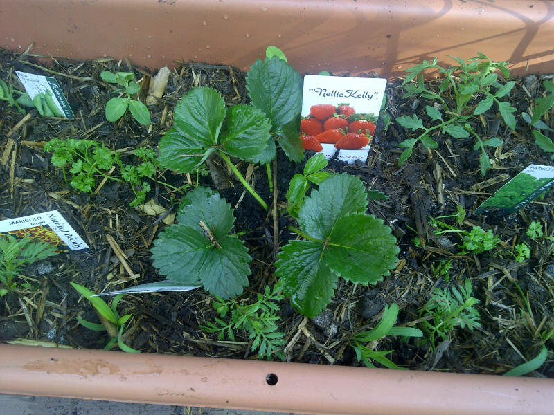 I checked the bill as I reeled away from the register and discovered the tubs were actually $59 each. Fark. The other $80 was spent on organic dirt, strawberries, peas, parsley, rocket, tomatoes and assorted flower seedlings. Those $4.59 pots of greenery do add up.
