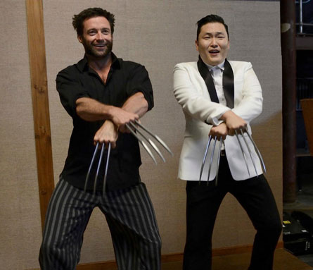 Meanwhile, over at HouseGoesHollywood: Sandra Bullock and Chelsea Handler get naked in a shower together and trade insults … Wolverine does it Gangnam style … Kirstie Alley jumps out of a cake … and Sean Penn gets a hard-on for his old missus, Madonna …