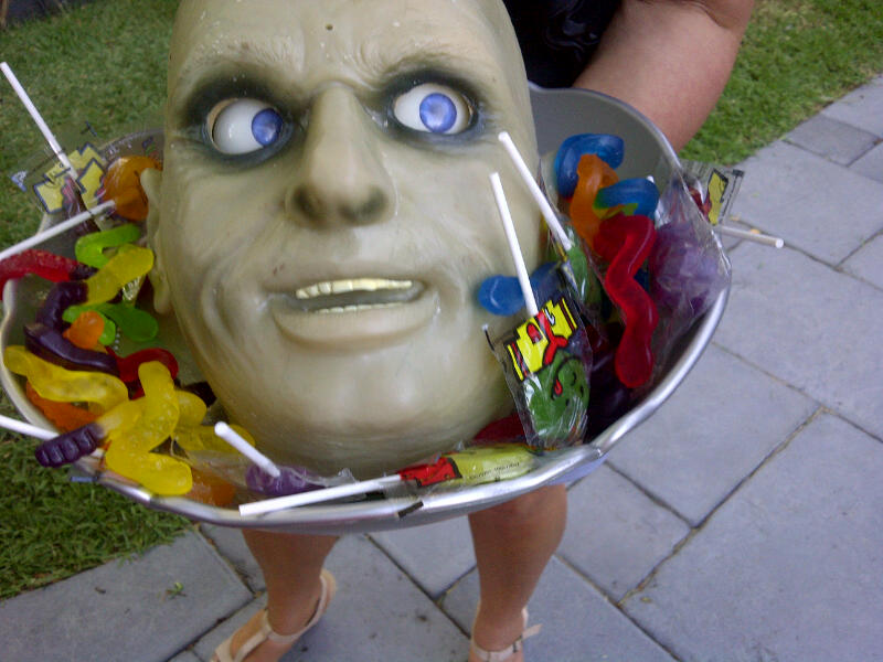 1. Wow your neighborhood goes all out. We had one group of knockers. I got mooned! And that was before I told them we had no lollies! I’m yet to check the car tyres.