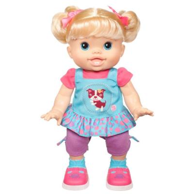 So I settled for the Baby Alive Wanna Walk Doll, which “is ready to walk – and she can really “learn” do it with your help and loving care! She has lots to say, too, with more than 40 fun phrases and sounds like “Hold on tight!” and “I did it!” Walking makes her happy, but she’ll be happiest when you scoop her up and give her lots of hugs to show her how proud you are!”