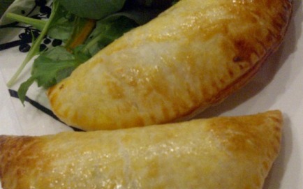 Cut four circles into each sheet of puff pastry. Place a heaped tablespoon of potato mixture on one side of each pastry circle, leaving a 1cm edge. Brush edge with beaten egg. Fold pastry circle over mixture and use a fork to press the edges together. Brush with beaten egg and place on baking paper on a baking tray.