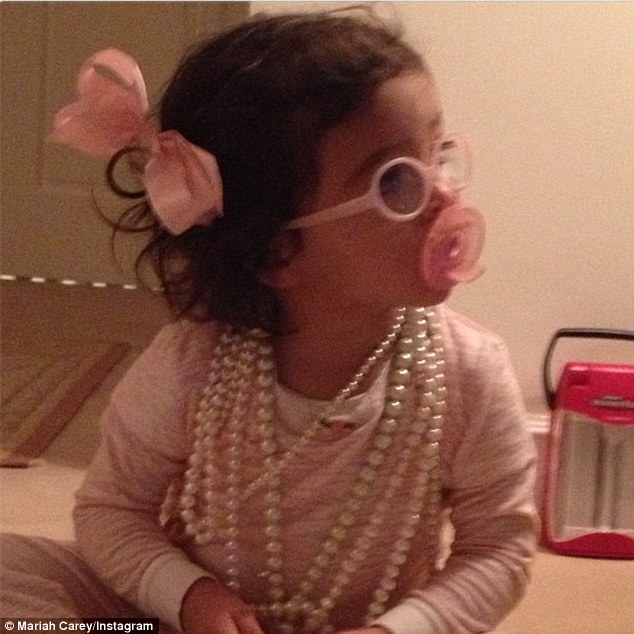 * Mariah Carey tweeted this cute picture of her daughter Monroe with the caption: ‘Ms Monroe seems to think sometimes pearls can be your best friends too: )’
