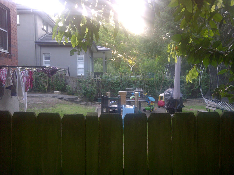 But now as I eat my goat’s cheese omelette for brekkie I’m faced with this view: passing cars, strangers’ undies and faded play equipment. A view that was previously lovely trees.