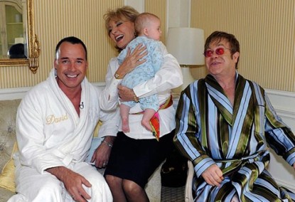 According to the New York Post: “Sir Elton John and David Furnish have welcomed their second baby via surrogate, sources tell The Post’s Los Angeles correspondent Richard Johnson. The couple are said to have had their second child with the same surrogate mother who bore their first son, Zachary, on Christmas Day 2010. Sources further said the same California-based woman — whose identity is being kept secret — also gave birth to Camille Grammer’s kids. But Elton’s rep Fran Curtis has refused to confirm or deny the new arrival. She told us, “We never discuss our clients’ personal lives,” even while she negotiates with US Weekly for another cover story.”