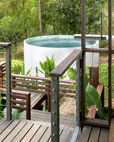I’m still hooked on the idea of those clever concrete water tanks turned swimming pools. I can’t help staring at this shot from Better Homes & Gardens. The diving boardy bit is particularly fabulous – so much cheaper than having to fence the whole thing.