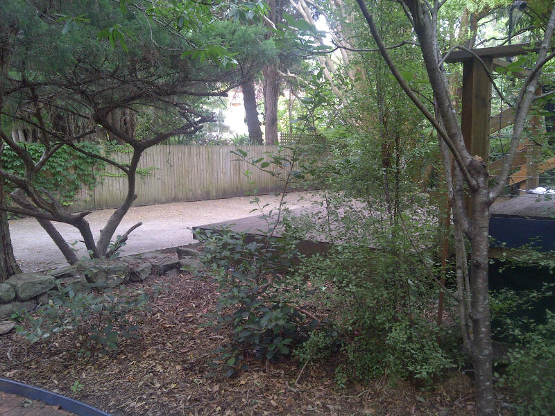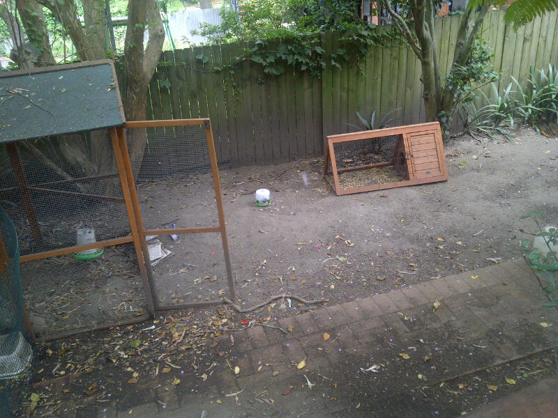 It has some lovely, lush trees, but many things conspire against it – a concrete-encased creek running along the back fence, a complete lack of sunlight and eight very destructive chooks.
