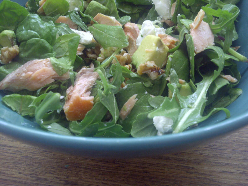 Just one problem – the Sprogs were horrified by a bowl of smoked fish, smelly cheese and green stuff. So I made them cheese toasties and Husband and I scoffed the salad.