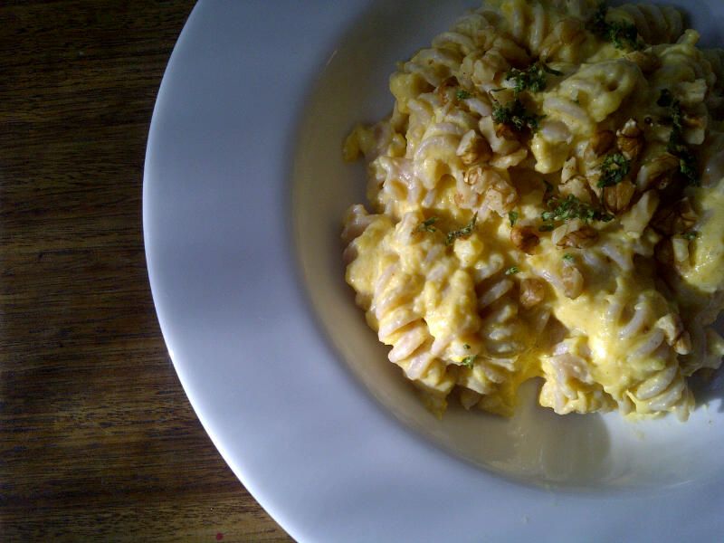 Then I tricked Sprog 2 into eating a dinner of spelt pasta with creamy pumpkin sauce by telling her it was macaroni cheese. But I can’t share the recipe. It’s not quite right yet. Still needs a bit of Heston-ing. And the pic has a touch of the vomit about it.