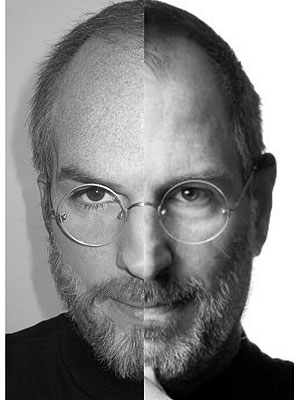 Ashton Kutcher looks spookily similiar to late Apple honcho Steve Jobs in the upcoming biopic jOBSs. He shared this photo of himself split with Jobs on Twitter.