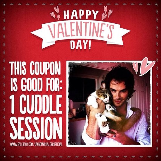 Ian Somerhalder was giving out free cuddle sessions in honor of Valentine’s Day on Instagram. He also tweeted: “Happy Valentines Day you ladies.Though its a conspiracy of chocolatiers,florists&Jewelers,It is a great excuse to give some ladies some love.”