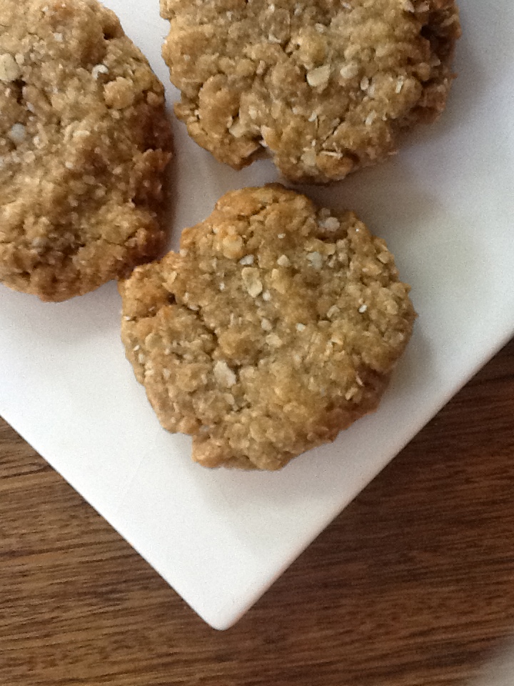 METHOD: Preheat oven to 160C. Combine oats, sifted flour, sugar and coconut in a bowl. Combine butter and golden syrup and microwave until butter melts. Combine soda and water, add to butter mixture. Stire into dry ingredients. Place heaped tablespoons of the mixture onto baking sheets, 5cm apart. Press down lightly. Bake until golden.