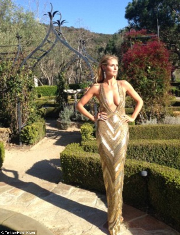 Heidi Klum wore a VERY revealing dress to the Elton John bash. She tweeted: ‘On my way to the Elton John Oscars Party to support the Elton John AIDS Foundation in this fabulous dress by Julien Macdonald. Lots of glamour and sparkle!’