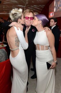 Miley Cyrus gave Elton a kiss on the cheek and wrote: “Love this”