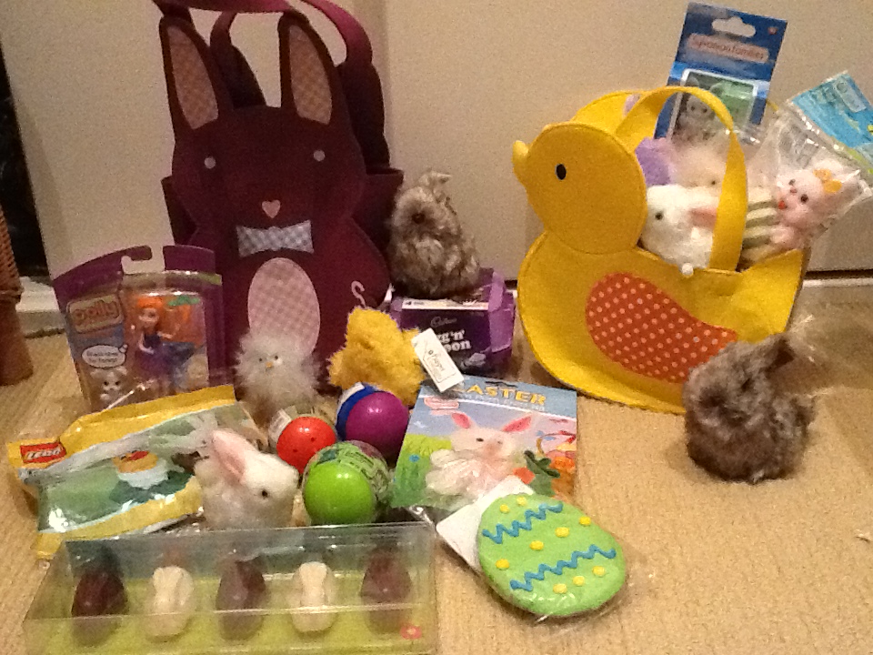 And when the Easter bunny hops to our place on Sunday, he’ll be leaving this booty. I told the kids I’d sent an email to him asking for more toys, less sugar. They were cool with that. I think he may have gotten slightly carried away on eBay and at Woolies, Target, every $2 shop he happened to pass …
