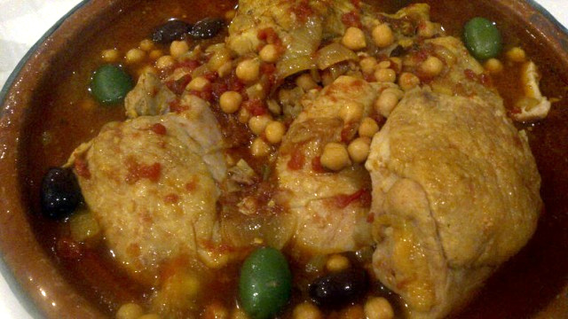 Method: Toss chicken in mixture of paprika, turmeric and ginger. Fry spiced chicken in olive oil on a low heat until sealed and golden. Place chicken in slow cooker. Add onion and garlic to the pan, cooking on low heat until soft, then place in the slow-cooker. Add tomatoes with their juice, cinnamon, stock and lemon juice to the slow cooker. Cook on high for 3 & 1/2 hours. Add chickpeas to the slow-cooker for another 30 minutes. Remove pulp from preserved lemons, rinse rinds under cold water and finely dice. Add to chicken with olives. Simmer a further 10 minutes. Serve with cous cous and sprinkled with parsley.