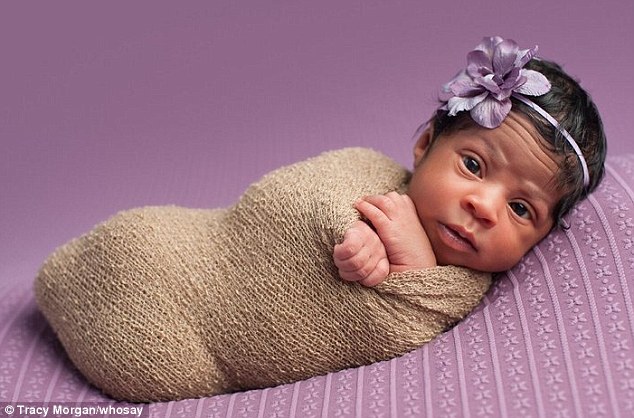 >> 30 Rock star Tracy Morgan introduced his mini-me newborn daughter to the world via his WhoSay account with the proud caption: “Here is MAVEN SONAE MORGAN at 2 weeks y’all!!!”