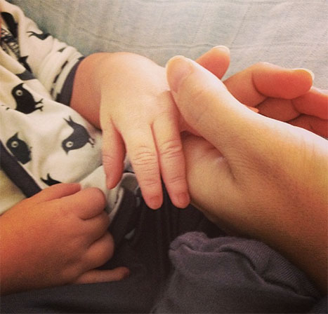 The first-time mum captioned the Instagram pic: “We hold hands cuz we are bests.”