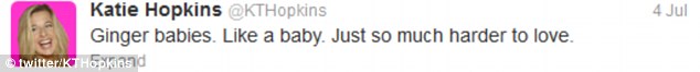 Then there’s that awful human headline, Katie Hopkins, who sent out this lovely tweet recently: