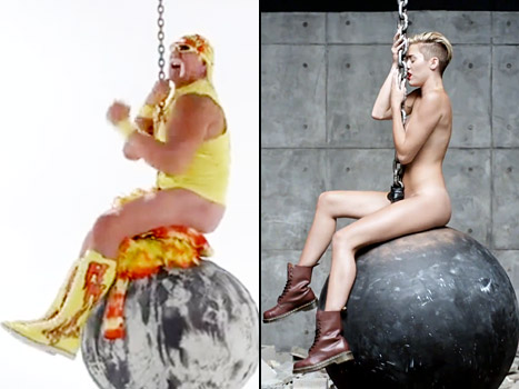 In the video, the 60-year-old swings on a wrecking ball wearing a man thong. Fortunately, unlike Miley, he decided not to go entirely naked.