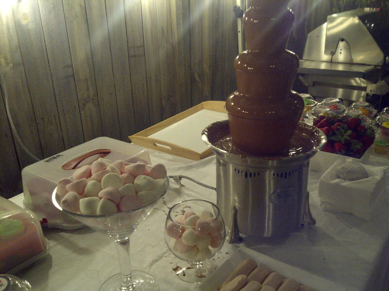 There’s a CHOCOLATE FOUNTAIN in the backyard.