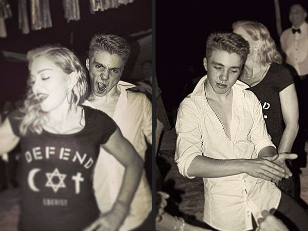 For example, in the shot above he dances with his famous mum and appears to be taller than the Queen of Pop. He captioned it: “Photobomb much @madonna.”