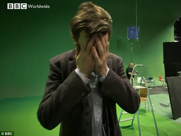 The actor was overcome with emotion when head writer and executive producer Steven Moffat presented him with a commemorative sonic screwdriver.