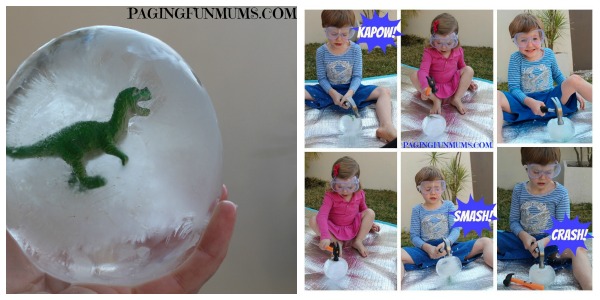 >> Or freeze some “dinosaur eggs” the night before the party then let kids to smash them to retrieve their plastic toy keepsakes. Click here for the easy instructions from Paging Fun Mums.