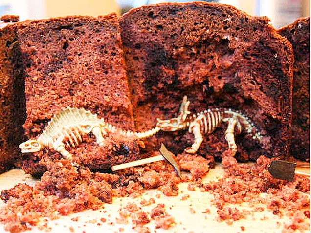 >> Your budding paleontologist will be head-over-chisel for this totally rad, geeky cake that’s got surprises galore hidden inside. Before baking, you’ll want to burrow plastic figurines in layers of chocolate batter, along with bits of chocolate wafers, ladyfingers, and chocolate bar to make “rocks.” When baked, arm the kiddos with forks and start exploring! Cool, mum. Click here to see 22 more cool dinosaur cake designs.