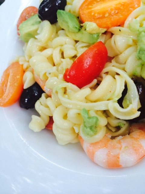 Prawn, avocado & tomato pasta salad