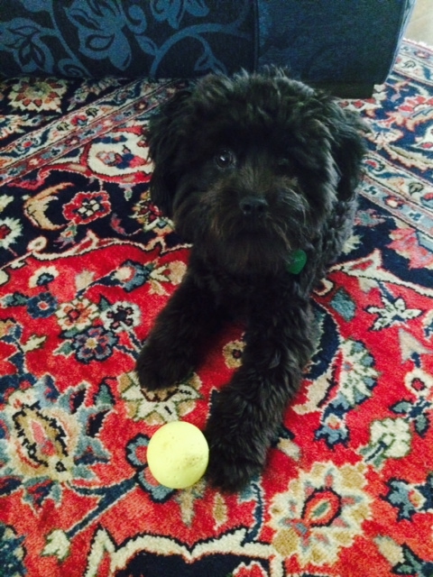 That’s my dawg on a Persian rug we inherited from Husband’s parents. Great colours, huh? The art deco lounge behind him was discovered many, many years ago at an antique centre on Parramatta Road (Husband and I used to love antique browsing pre-kids). It was covered in brown floral velvet back then and one of the armchairs reeked of stinky dog. Nothing got that smell out – we eventually had to get the whole thing completely restuffed, resprung and recovered to salvage it.