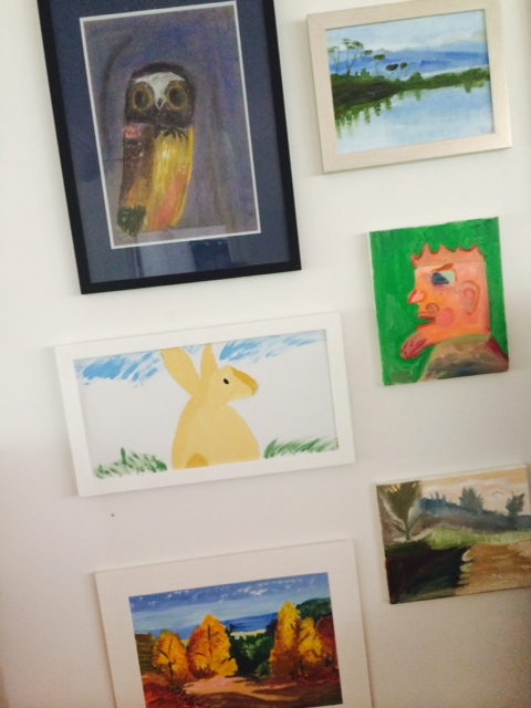 The kids and I went away for the weekend in January and came home to discover Husband had hung all their artworks on the wall. These are just a few of them. Clever little buggers.