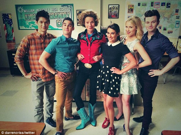 >> Darren Criss gave Glee fans a sneak preview of the show’s 100th episode by sharing pics on social media of the cast, including Gwyneth Paltrow, who returned to her role as Holly Holliday, dressed as a cowgirl.