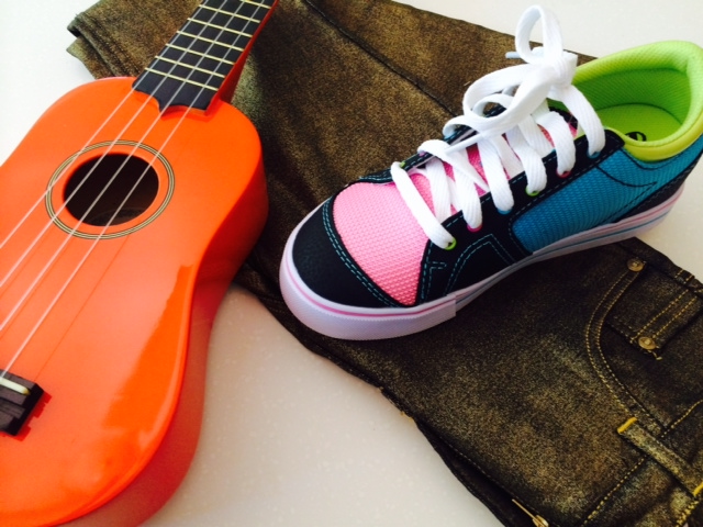 So I got her an orange ukelele and a pair of gold jeans (in addition to the incredibly dangerous sneakers).