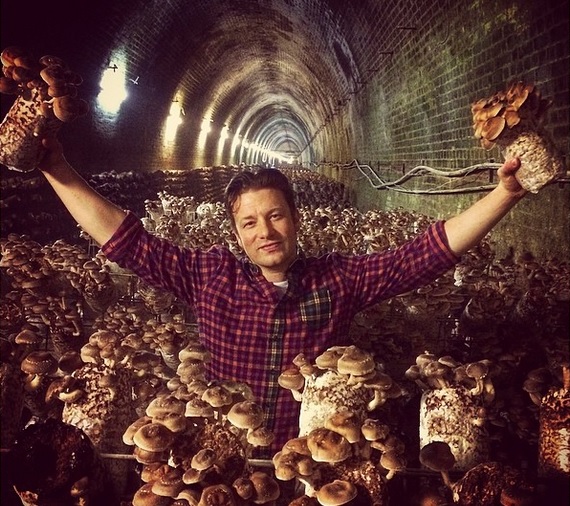 >> How’s this for a freaky Instagram shot? Jamie Oliver wrote: “I’m In an amazing Mushroom farm in an old railway tunnel outside Sydney super cool just picked a whole bunch of stuff thanks to Dr Noël for the tour !! Cool fact they had a thunder storm last night so all the mushrooms double in size when this happens ??!! Crazy amazing stuff what do you guys like to do with mushrooms ?? Broth fried on toast#newsouthwales #jamieoliver”