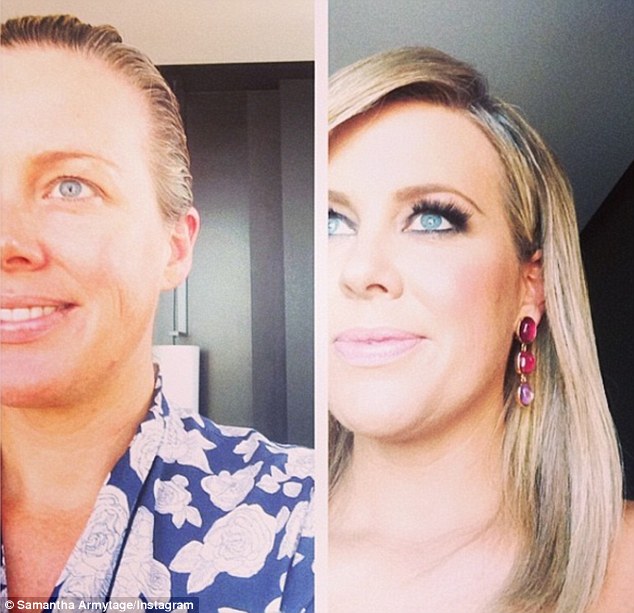 >> Samantha Armytage also shared a pic on Instagram of her before and after make-up looks.
