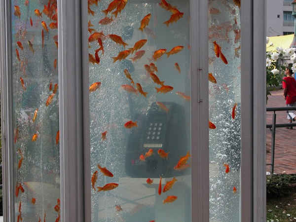 I spend a lot of time trawling the internet every day, looking for inspiration for “travel fluff” stories for escape.com.au. And yesterday I stumbled across something I just have to share with you. Back in 2011, a Japanese artist collaborative known as Kingyobu started turning Osaka’s old, obselete phone booths into giant goldfish aquariums.
