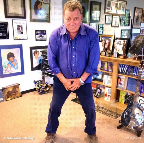 >> William Shatner was up for it, sharing this pic on WhoSay, captioned: “I accept @rickygervais‘ challenge but of course I will have to use more than one hand & reveal myself to the inquiring public #feelingnuts.”