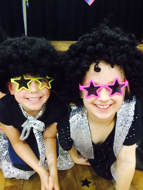 Then I flung myself on a train to attend the youngest’s school assembly item. She danced to YMCA and Blame It On the Boogie dressed like this …