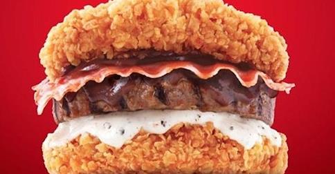 >> A “hamburger” … with fried chicken fillets instead of a bun. It’s just one of the scary creations available from fast food chains around the world. Click here to see 18 more >> http://bit.ly/1yWIsmT