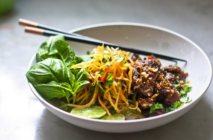 I was a bliss bunny on Friday. I decided to pretend for a few hours that I didn’t need to pack and went for a haircut, then had lunch with the divine DD at a groovy Vietnamese place called Mama’s Buoi . We had the wagyu beef with green mango salad (below) and the vermicelli salad with lemongrass pork and spring rolls. Yum, yum, yum. Bulk fun day. Bulk. Fun.
