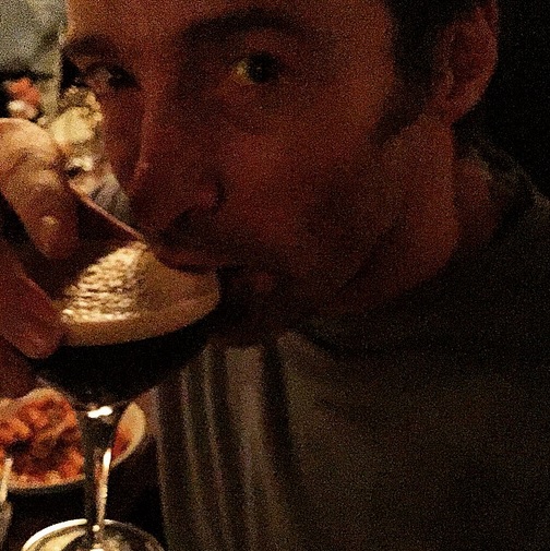 And: “Topping off a “tops” Aus Day with three of my fave things … Pizza, vino and @simmycunico #bloodybeauty.”